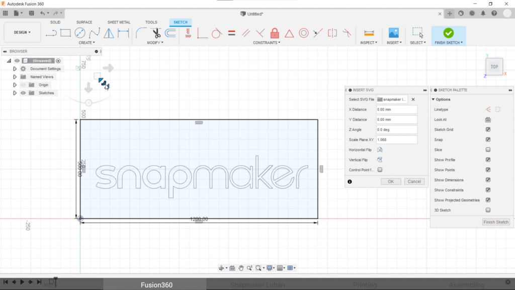Since we are making a “Snapmaker” glowing symbol, we would need a list of materials (listed in the video). The very first step is to create models for the letters. Here are some of the settings you will need to adjust in Fusion 360.