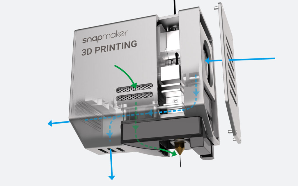 Snapmaker 2.0 3D printing module optimization (improved airflow and less material waste, new design in production in February 2021)