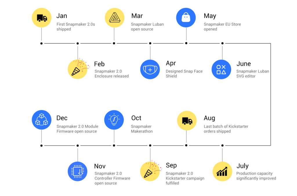 Snapmaker’s 2020 event timeline (listed by month)